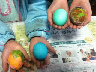 I know this year Easter is in April. On the other hand here in Japan March is the end of fiscal year. Some my students will leave. So as the last enjoynable event last week it was our Easter week,. some kids enjoyed decorating egg shaped cookies