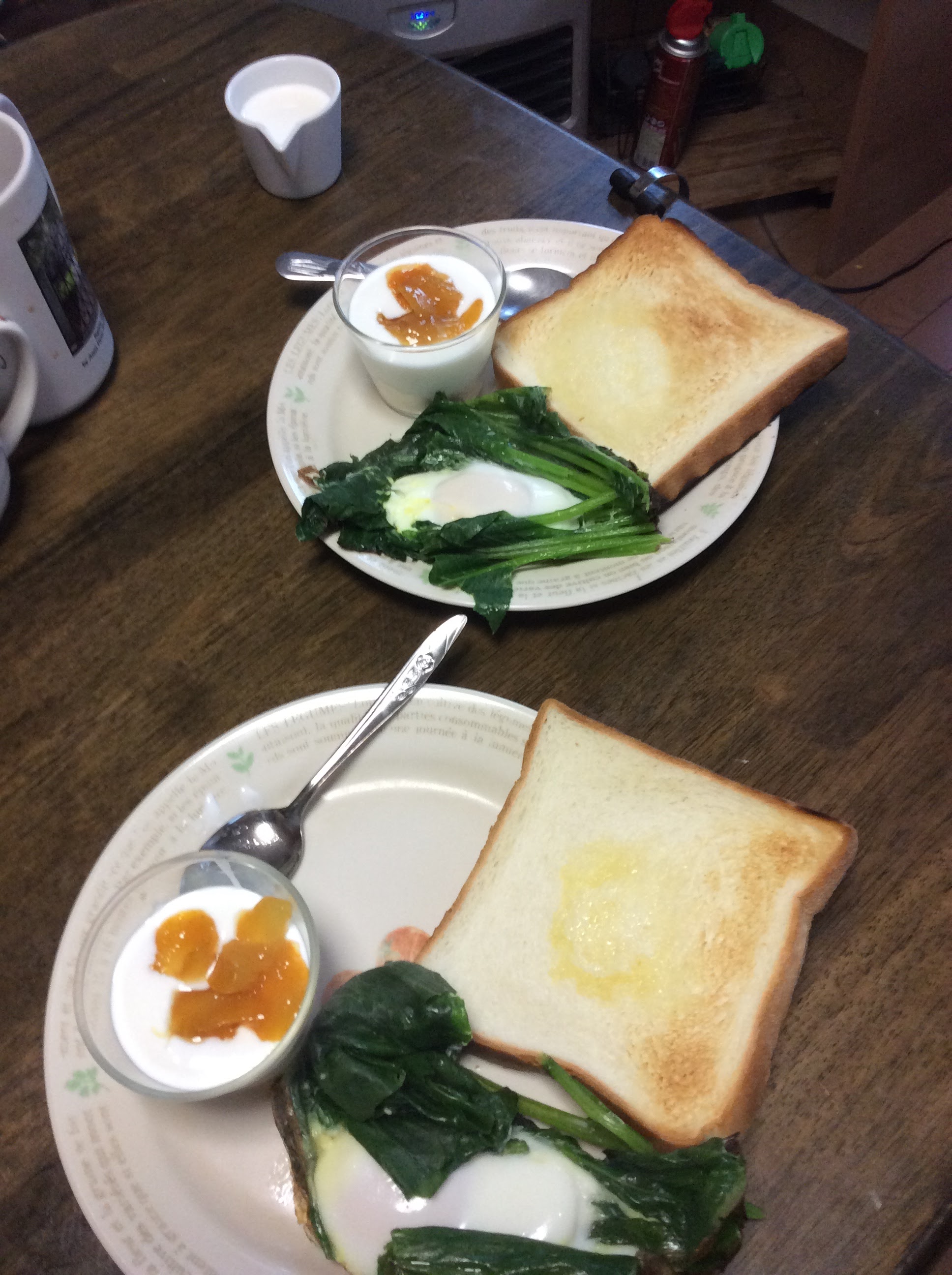 Today, I have to go to the breakfast to take cholesterol    check. So “we” have no breakfast. When I don’t serve breakfast, he doesn’t take breakfast except coffee. When he goes out play golf, he drop by at a convenience store.